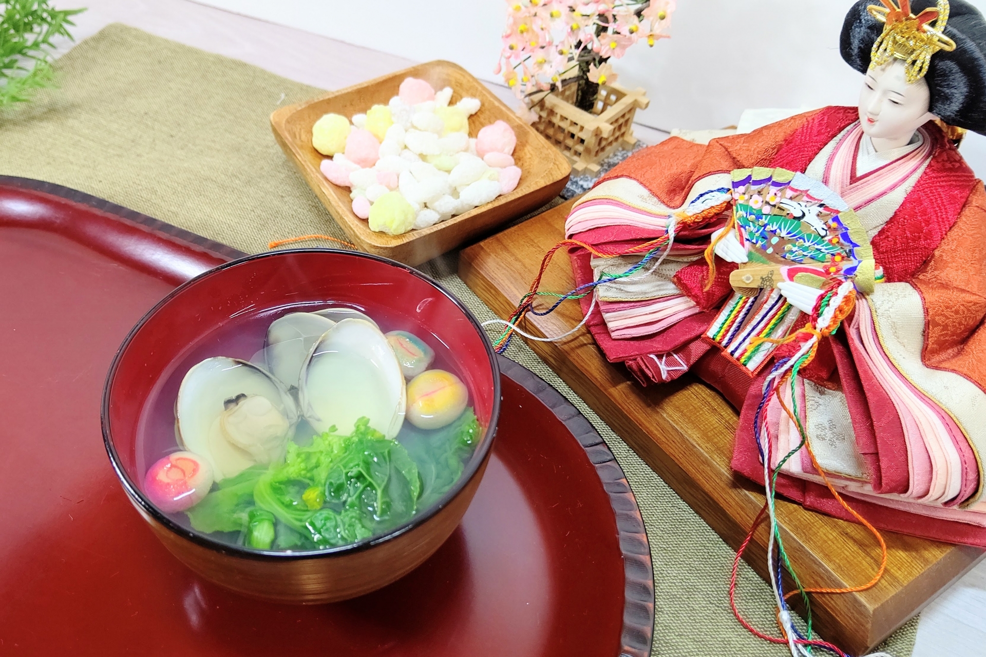 はまぐりの貝殻は、ペアの相手以外ではぴたりと合わないため古来より良縁の象徴とされてきました。ひな祭りのお吸い物には「良き伴侶に恵まれますように」という願いが込められています。