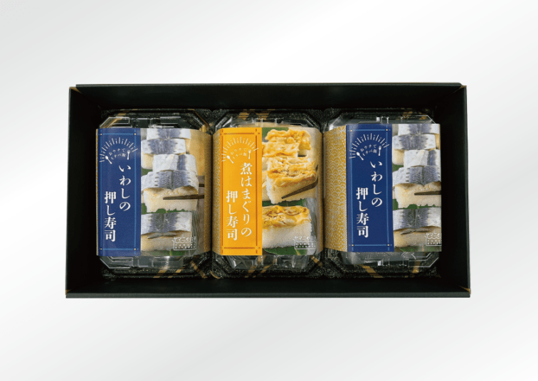 千葉の押し寿司ハーフ3本セット はまぐり1・いわし2「ギフト箱入り」