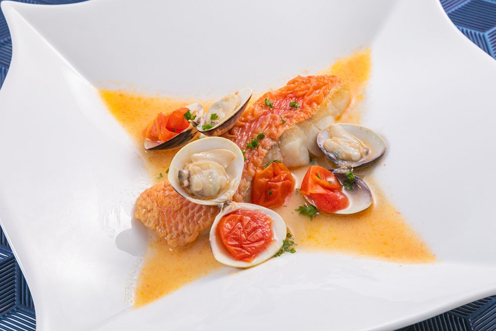 新鮮な金目鯛・はまぐりの素材の旨味を生かすため、塩とエキストラバージンオリーブオイル、ミニトマト、ニンニクのみで味付けしています。シンプルな味付けですが、一口食べると新鮮な魚介類の旨みとトマトの酸味が絶妙に調和した味わいのスープに思わず笑顔がこぼれます。