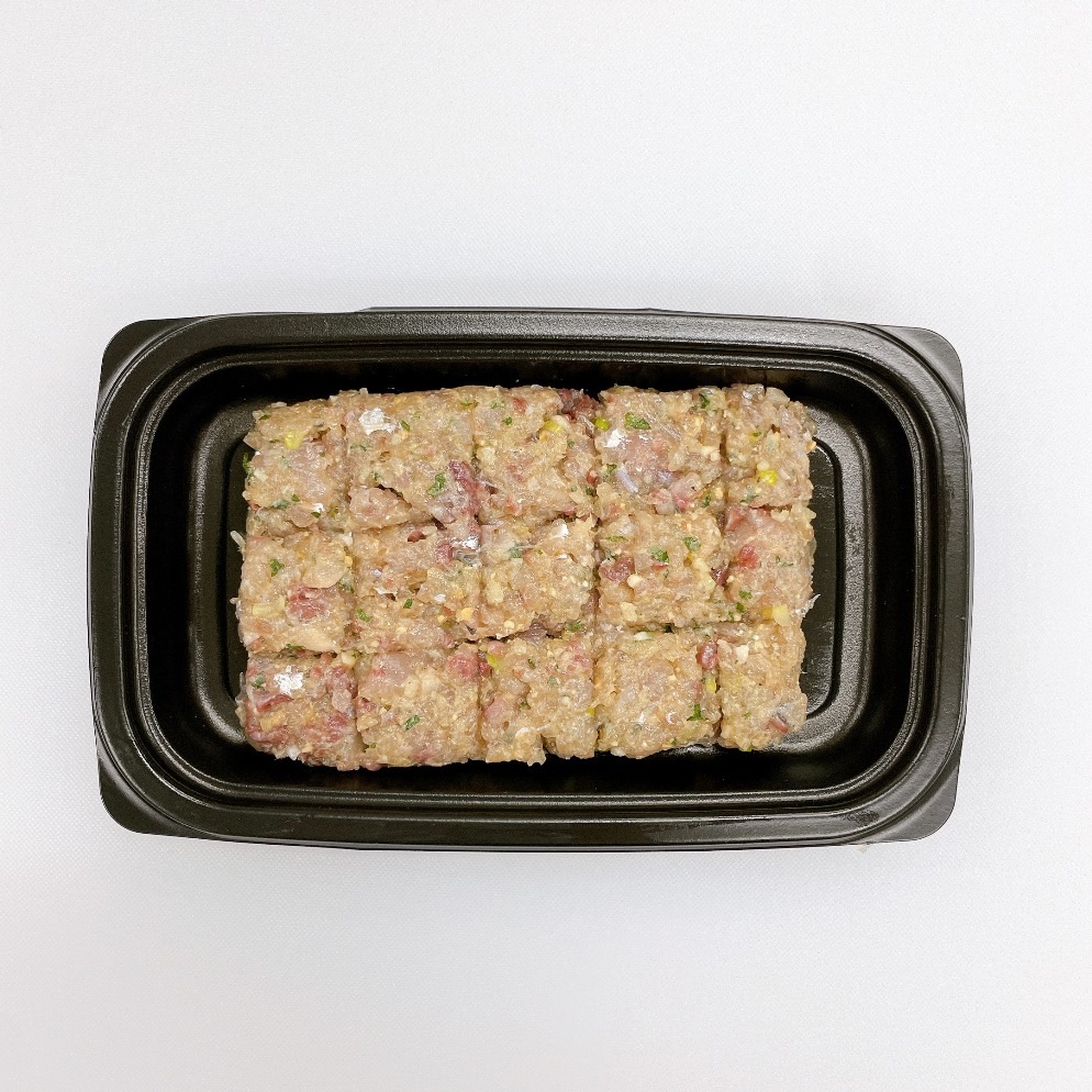 鮮度抜群の千葉県産アジを使用し、味噌・ネギ・大葉・しょうがを加えて丁寧にたたき、添加物不使用で仕上げました。
